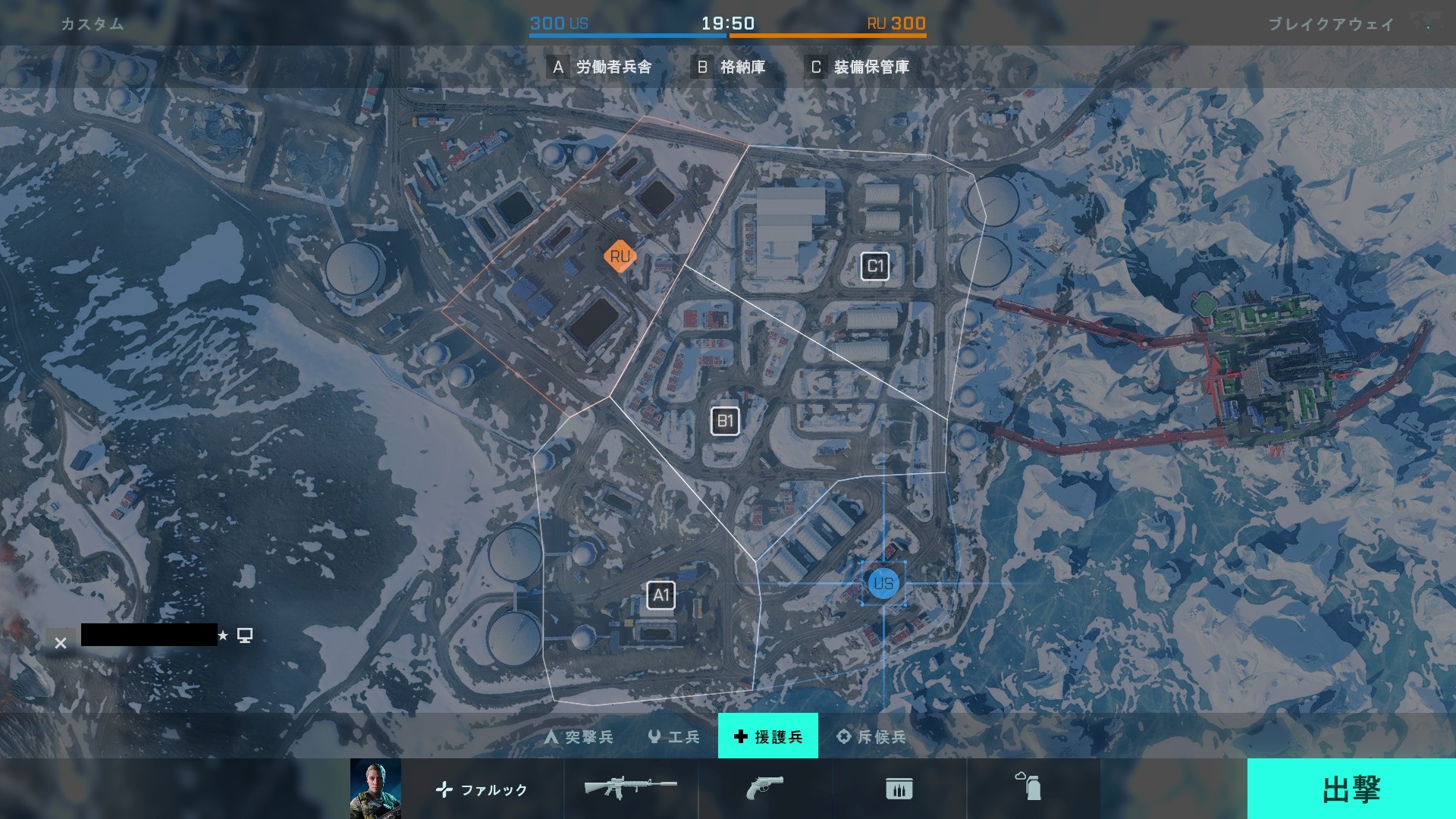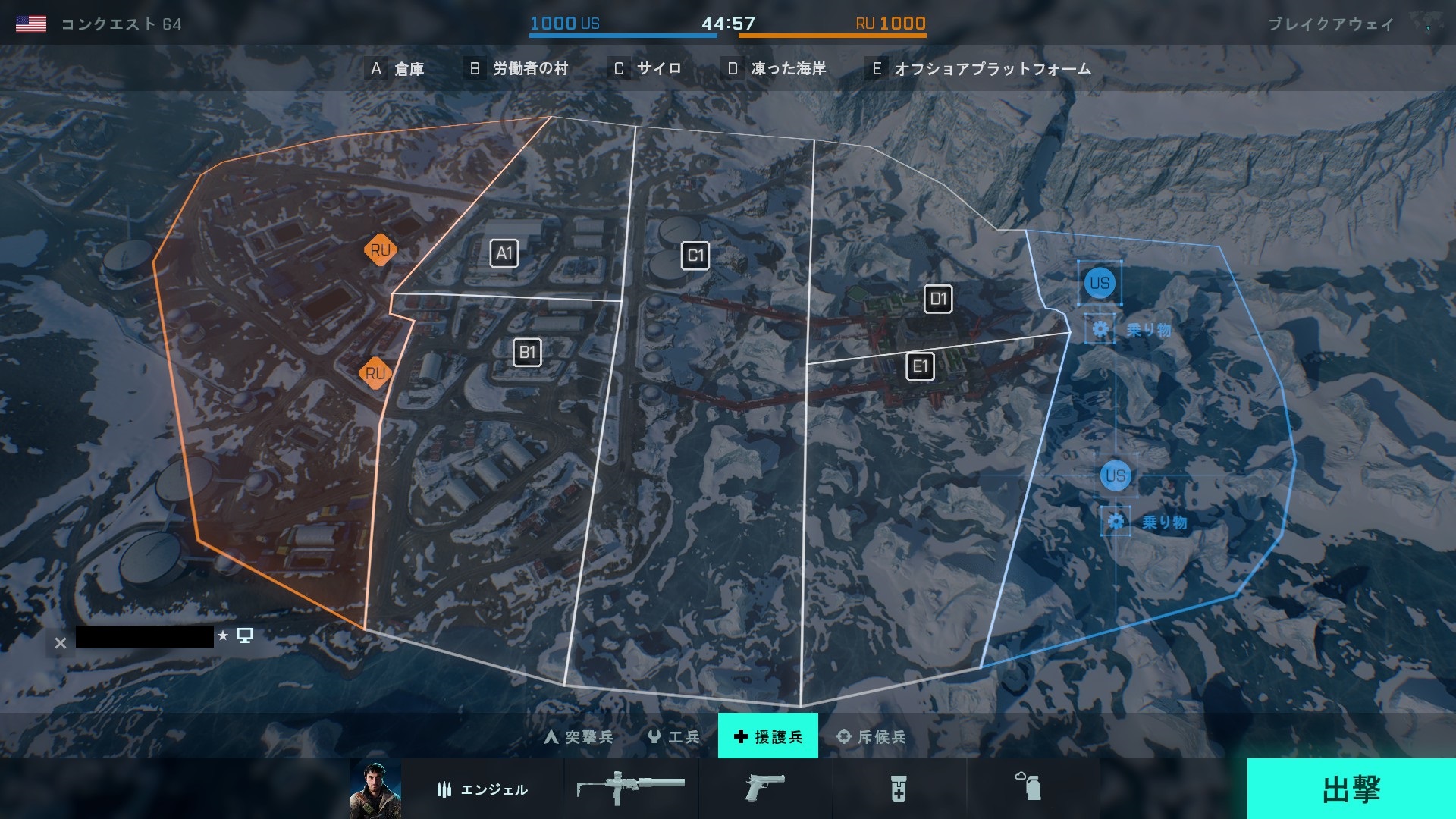 ただし、わりと開けているので航空ビークルが天敵。リスポーンする前に敵が来ていないか確認しておこう。