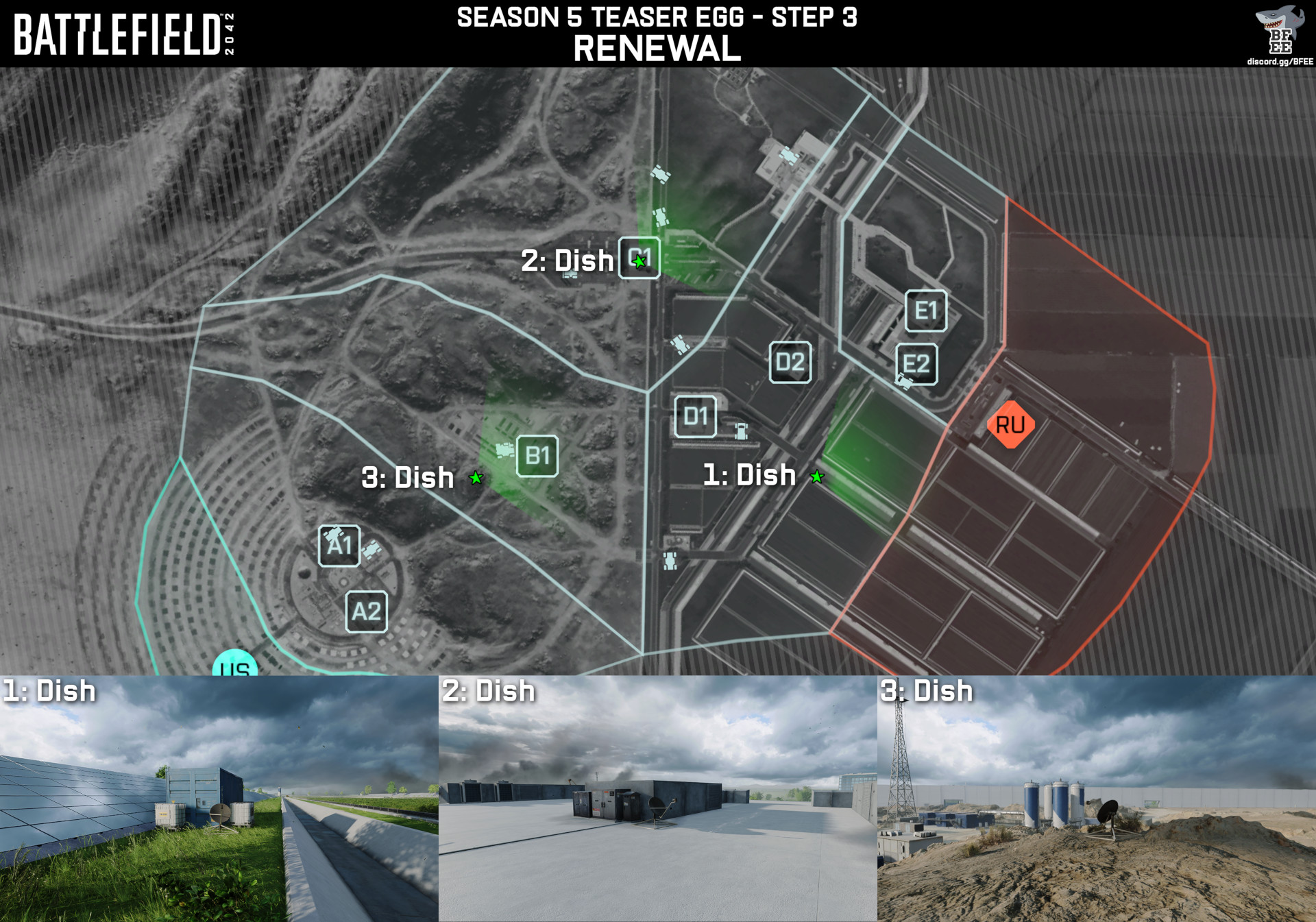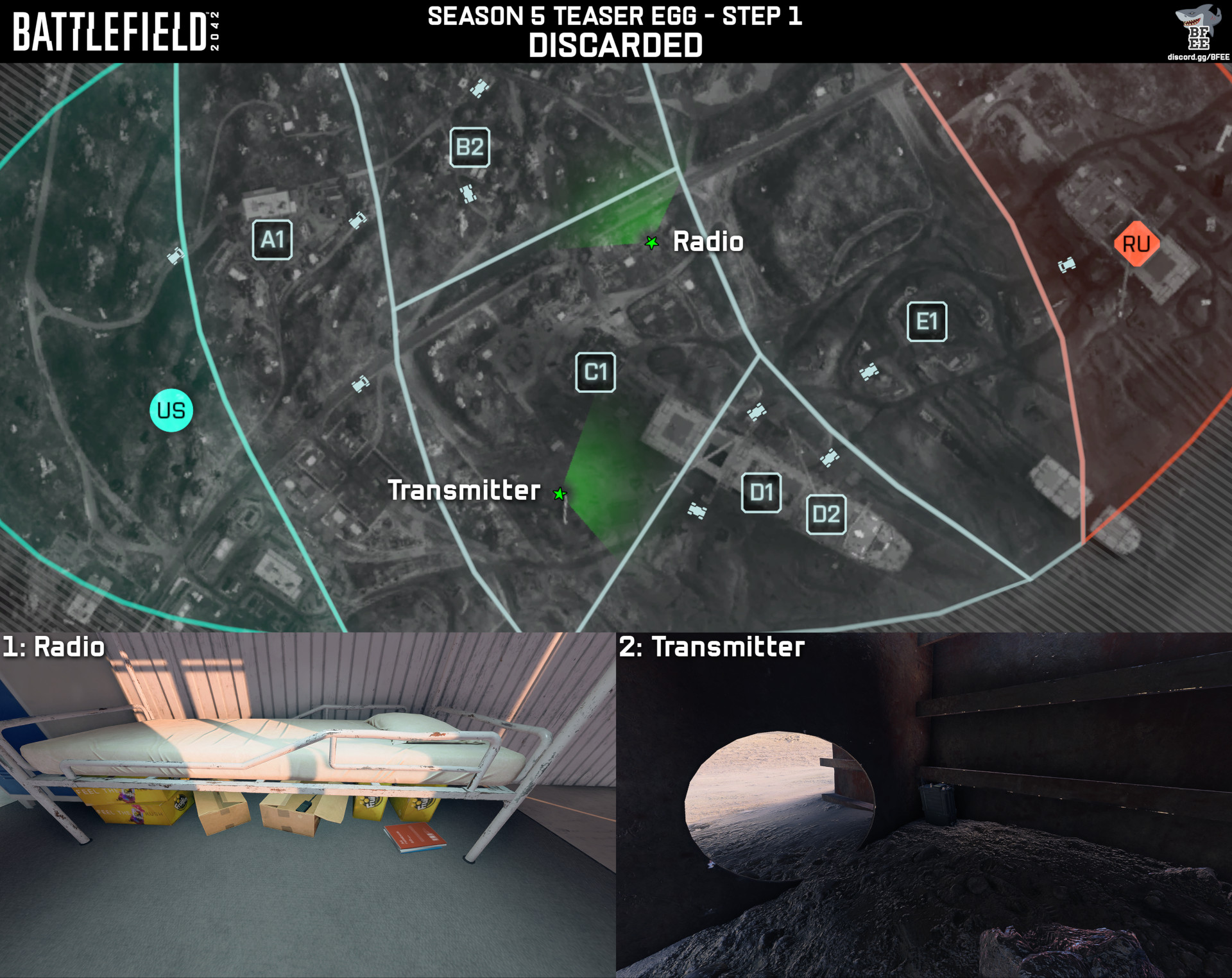 恒例のシーズン5ティザー。今回は「リニューアルデー これらはすべてフルXPのコンクエスト(64人)で達成できる。 マップローテーション用コード "AA5NZY"(128人レイアウト) 1.ディスカード